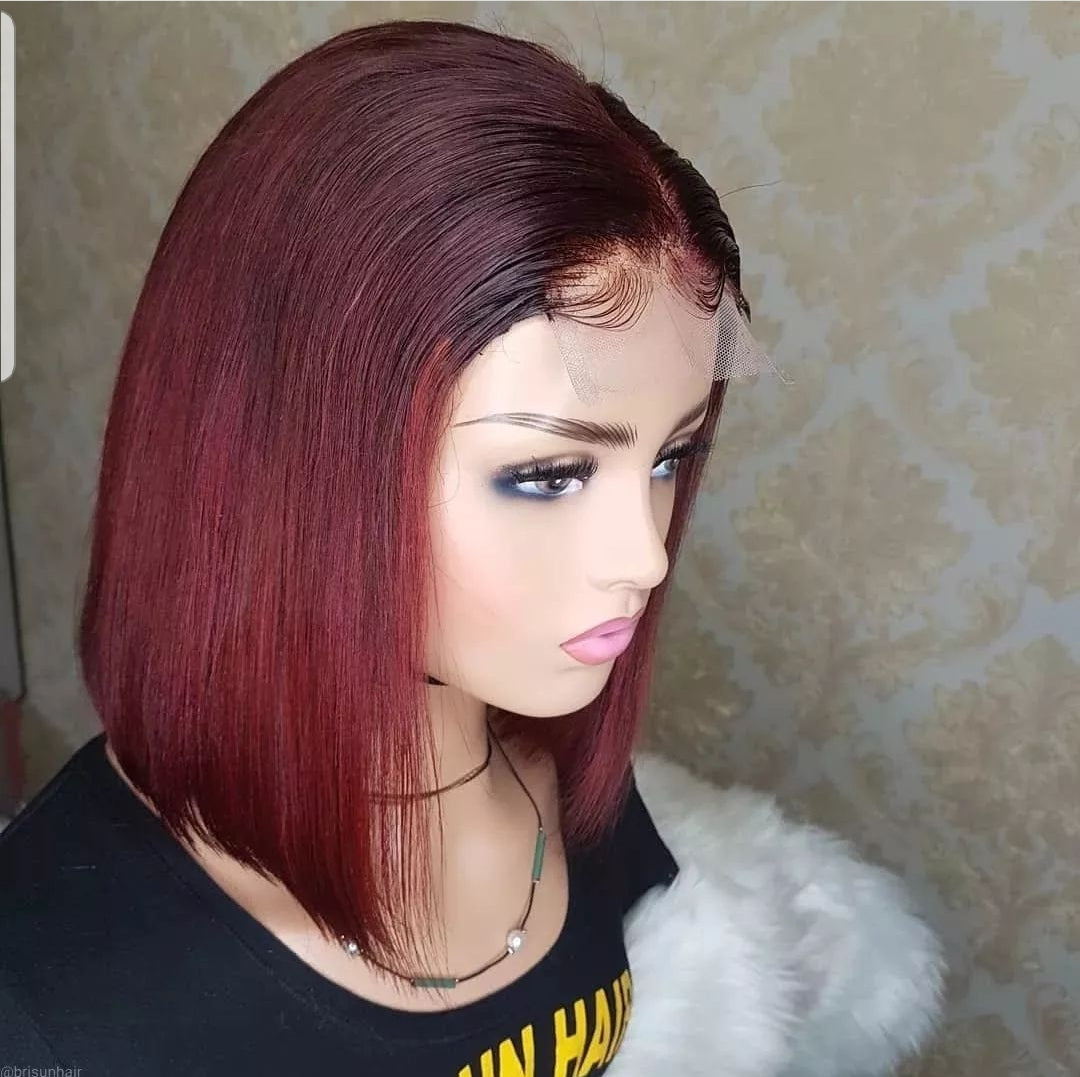 12inch frontal lace bob burgundy